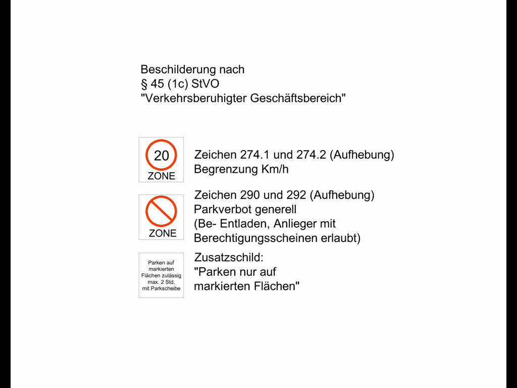"Verkehrsberuhigter Geschäftsbereich" 20 Km/h nach §45 1c beruhigt.