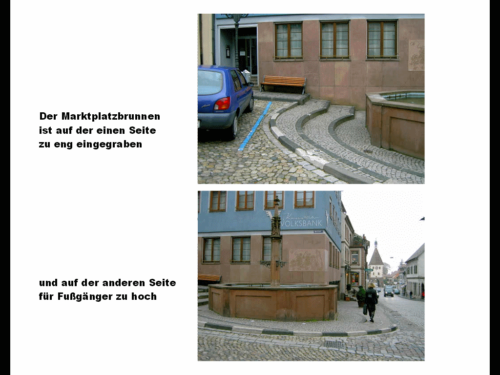 Der Marktplatzbrunnen ist auf der einen Seite zu eng eingegraben,